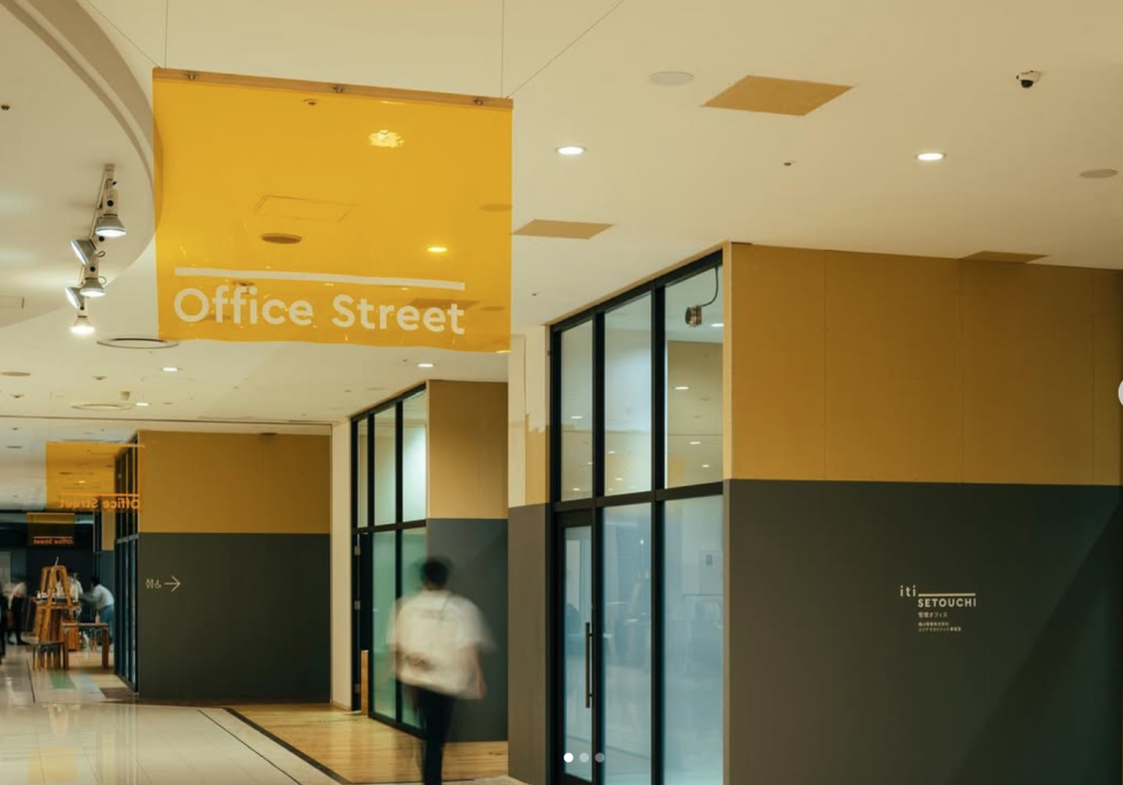 A:iti SETOUCHI(イチ セトウチ)は、旧そごう跡地の1階をリノベーションした、賃貸物件とパブリックスペースからなる複合施設です。もちろん、賃貸物件として、オフィス、飲食店、小売店等でのご利用もありますが、一般の方が、シェアオフィスを利用したり、パブリックスペースでイベントをしたり、会議室を利用したり、いろんな使い方ができます。パブリックスペースは、実は館内の50%以上あるんです。屋根のある公園をイメージしていて、一般の方が、ソファやテーブルで飲食をしながら語らいの場として活用もすることができます。一般の方だけではなく、いろんな団体にも、イベントや講演会等でご活用いただいています。