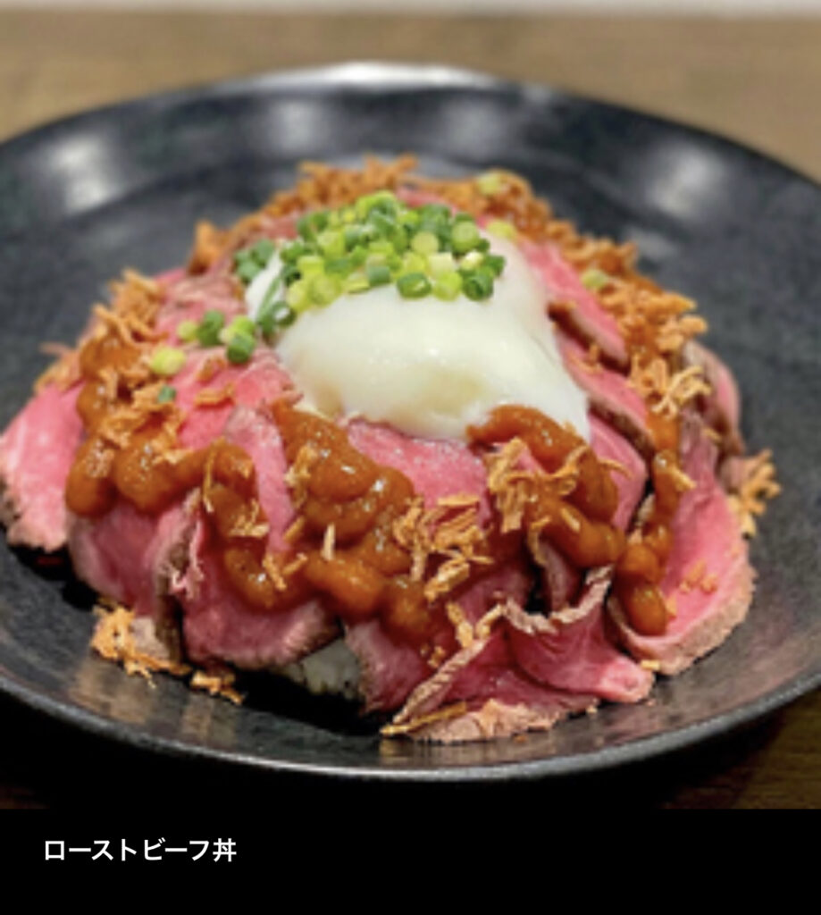 自慢の一品は自家製タレのローストビーフ丼、一口食べるたびに贅沢な美味しさが広がる、自家製のタレが更に引き立てます。当店の自家製ローストビーフ丼は、極上の牛肉を厳選し、低温調理法で一片一片、最適なレア度に仕上げています。肉はしっとりと柔らかく、噛むたびに口の中で溶けてしまいそうなほどの贅沢さ。