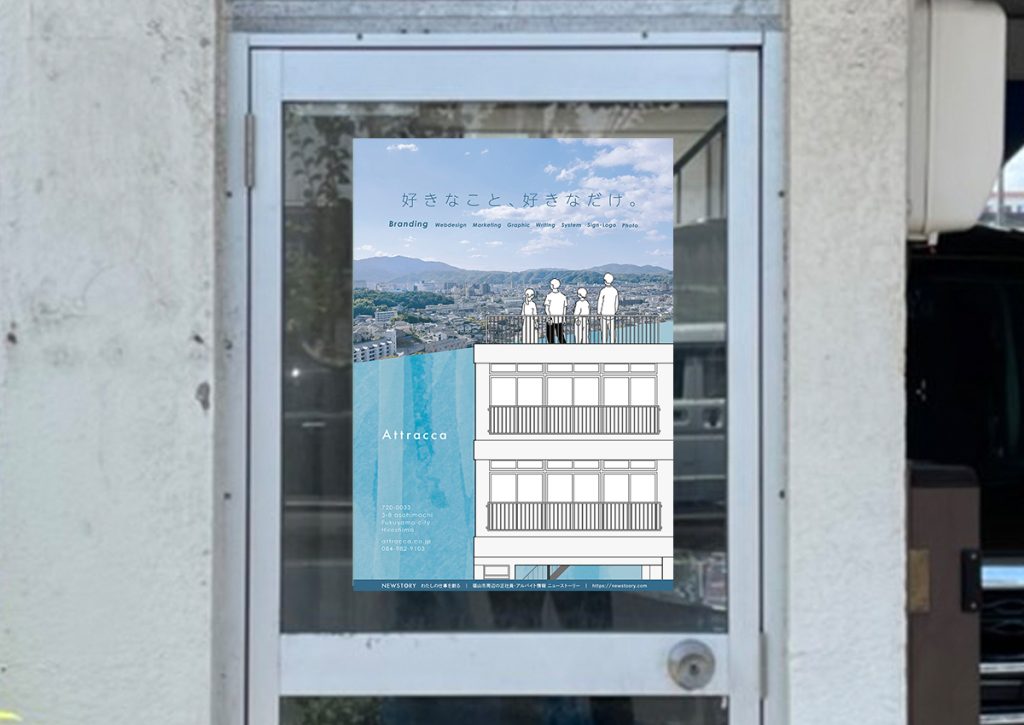 A:「ニューストーリー」は、福山市周辺の求人や転職情報を掲載したウェブサイトです。当初は、ただの求人サイトを作る予定でしたが、これでは求人企業の「想い」などが真っすぐに伝わらないと考え、試行錯誤を繰り返し、結局サイトをオープンしていないのに3回リニューアルしました(笑)。