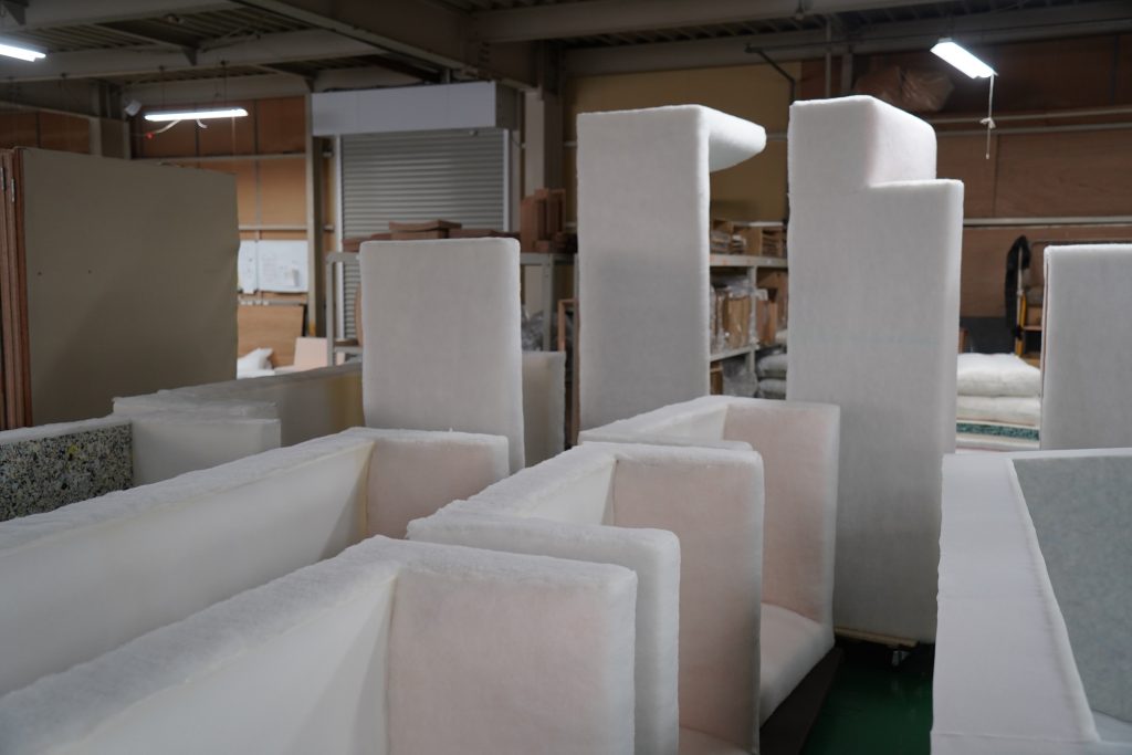 A:全国のソファメーカーやインテリアショップのOEMのご注文をいただくようになり、そこでさらにソファメーカーとして技術経験を積むことになりました。