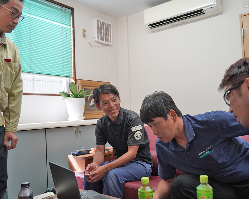A:そんなことをしていたから体が壊れてしまい、もう無理だ、辞めよう、となって福山に戻ってきたんです。地元でプラプラしている時に、共通の知り合いを通じて心石(現社長)と一緒になり、「今何してるの?暇ならうち来てみる?」みたいな話になって、拾っていただきました笑