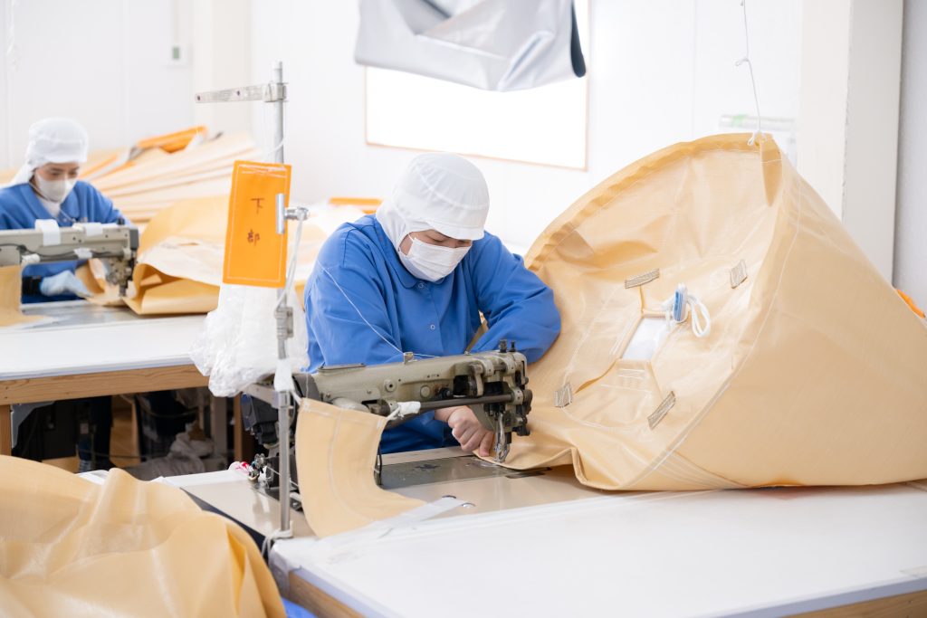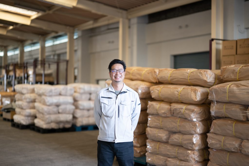 A: うちは産業用梱包資材を作っている会社です。中でも「フレキシブルコンテナバッグ」、通称フレコンバッグをメインで製造しています。これは粉状や粒状のものを入れて運ぶための袋で、段ボールでは運搬が難しい重い荷物や、粉塵が危険なものの輸送に使われています。他にも、フレコンバッグに付けるポケットや屋外用のカバーなど、付属品も作っています。海外製品が多い中で、小ロットや特殊な仕様の製品を国内で対応できるところがうちの強みです。