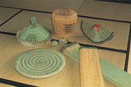 Bingo tatami covers were first made in the mid-16th century from a wild variety of rush grass grown in Numakuma Town. The covers are known for their thickness, fine quality, lustrous green color tinged with silvery white, and durable, unfading shades. Country-style round mats, braided hats, flower baskets, and other products can also be made out of short rush grass.