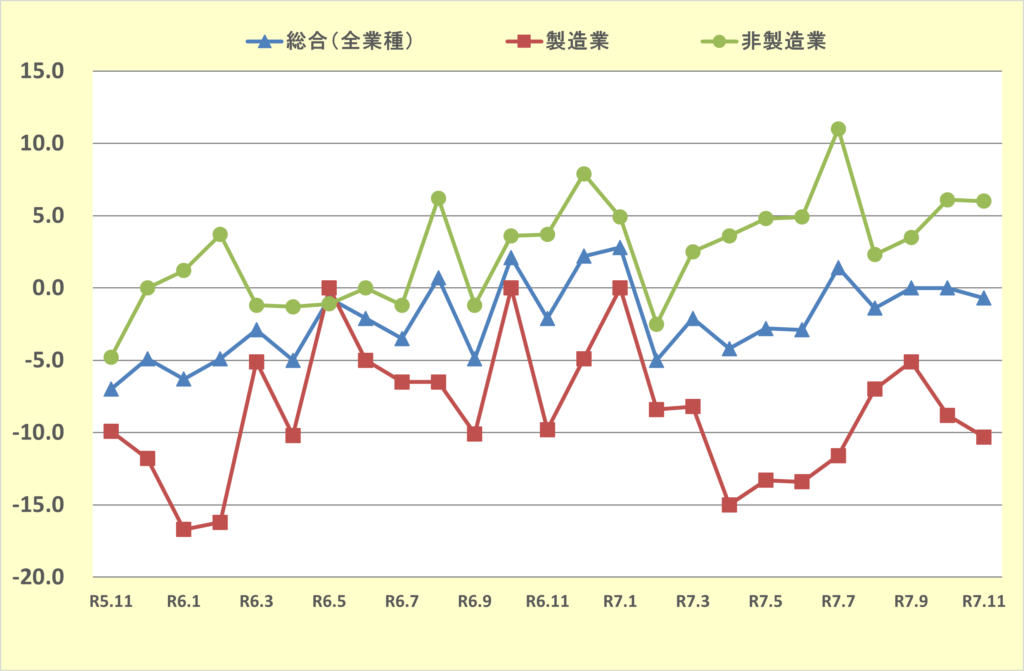 DI=(増加・好転など「良い」の回答割合)-(減少・悪化など「悪い」の回答割合)