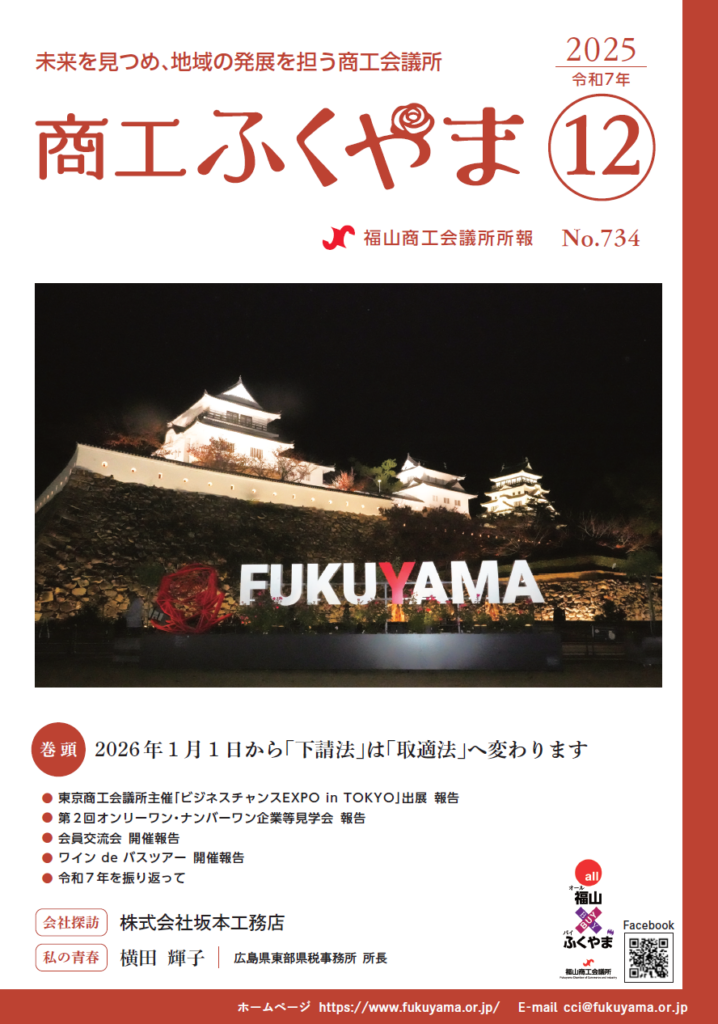 昭和36年発刊以来、さまざまな情報を網羅した「商工ふくやま」を会員の皆さまに毎月お届けしています。