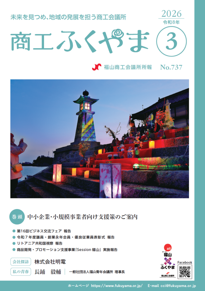 昭和36年発刊以来、さまざまな情報を網羅した「商工ふくやま」を会員の皆さまに毎月お届けしています。