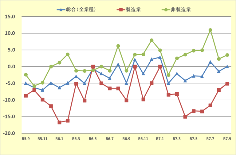 DI=(増加・好転など「良い」の回答割合)-(減少・悪化など「悪い」の回答割合)