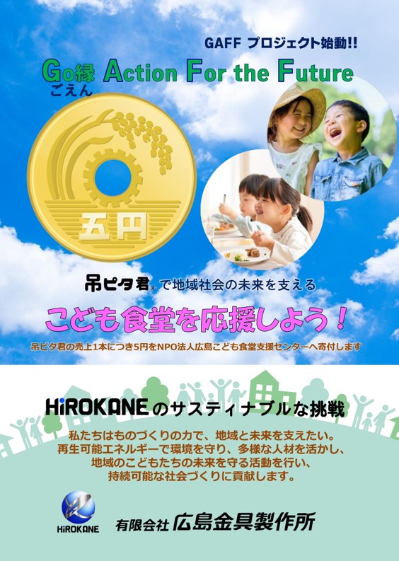 目標11「住み続けられるまちづくりを」 オリジナル製品の売上の一部を、NPO法人広島こども食堂支援センターに寄付し、地域の子どもたちの健やかな成長と安心できる居場所づくりを支援しています。 「使うことで社会貢献ができる製品」として、お客様にも共感いただいています。