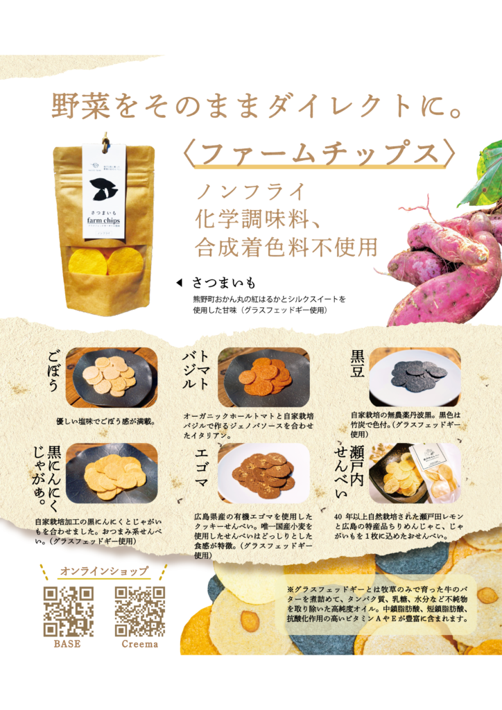 大きすぎやb品などいわゆる規格外野菜は自社工房でせんべい等に加工し再び商品として価値を付与しています。