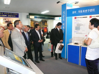 | 浦項商工会議所商工奨励館視察 | 崔永祐浦項商工会議所会長(右)と林克士会頭(左) |