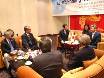 | 浦項商工会議所役員並びに当所訪問団 | 朴浦項市長(右奥)と会談 |