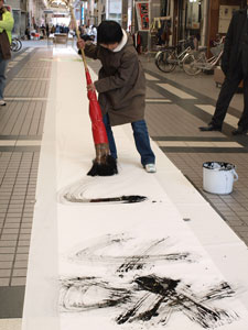 | 1月は、琴の演奏と約100メートルの大書初め大会 | ||||