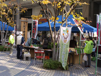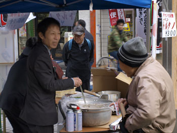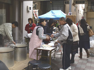 | 今回は、「ふくやま鍋」でおもてなししました。 | 小びとさんも市に来てくれました。 |