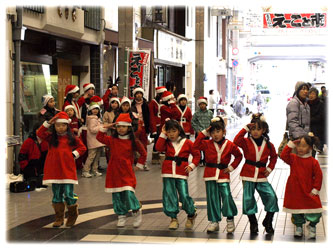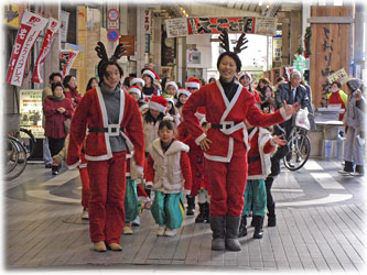 | 12月は、大変寒い中、かわいいサンタさんの大行進がありました | |