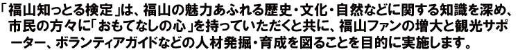 福山知っとる検定実行委員会は、上記団体責任者、新聞・雑誌等のマスコミ等に対し、受験者の統計情報(合格率等)を必要に応じて開示します。