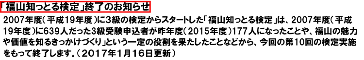 <第10回福山知っとる検定合格者・受験者特典当選番号>(2017.03.01)