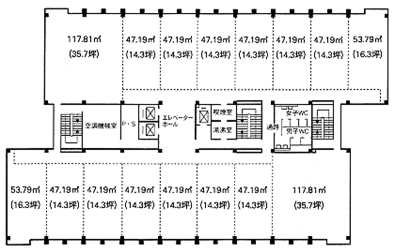 | 4階西館 | 47.19㎡(14.3) | 113,256円(7,920円) | 6カ月分 | 48,763円(3,410円) |