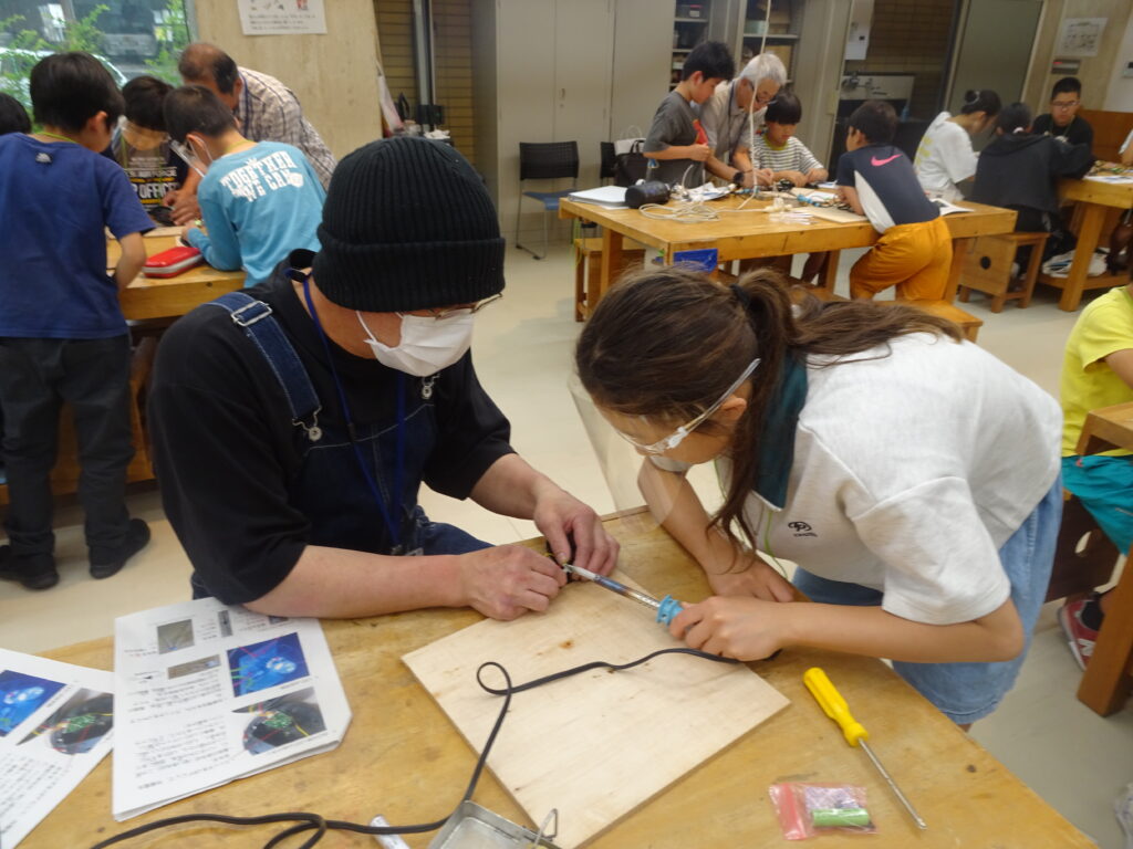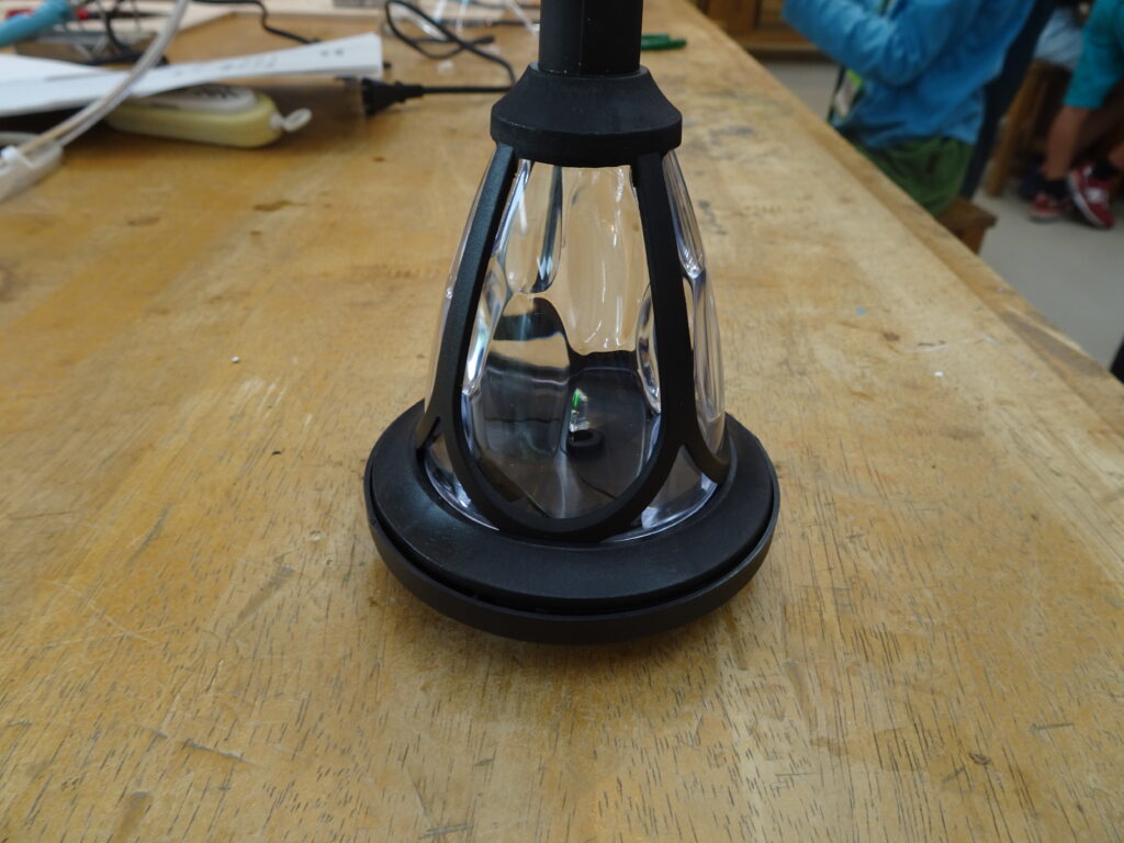 ソーラーライトを、自己点滅LEDイルミネーションに改造し、製作しました。ハンダ付け・分解組み立てを安全に学べ、色の変化も楽しむことができました。