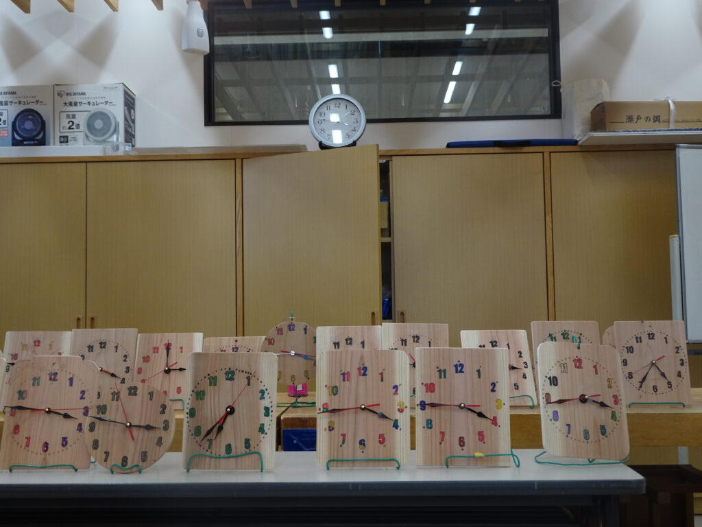 板と針金を使用して、掛け時計を製作しました。好きな色を塗ったり、板の形を変えたり等、オリジナルの時計が完成しました。