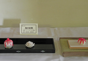 福山のお菓子文化発展のために立ち上がったアーティスト20人と和菓子職人とのコラボレーションによる新しい和菓子展では、陶芸家、建築家、染色家など、普段はそれぞ