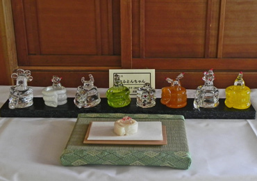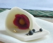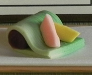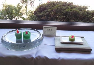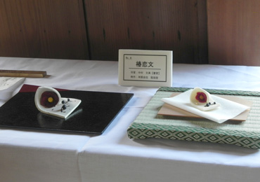 3月5日(土曜日)は、作品を見ていただくのみでしたが、 3月6日(日曜日)は、実際に和菓子を食べることのできるよう、お抹茶(500円)も用意しましたが、当日券100枚は、あっという間に売り切れてしまい、雨模様にも係わらず、多くの方に並んでいただいた方に、召し上がっていただくことができず、申し訳ありませんでした。