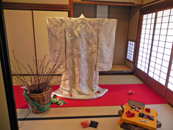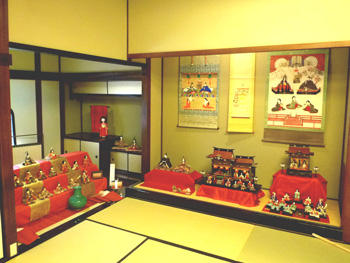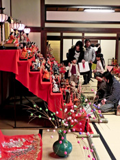 25日の展示会では、1社2作品を出展、26日は展示してある全10作品の創作和菓子の中からお気に入りの一品を選び、お抹茶で味わうことのできるお茶席も準備し、会場内に展示されたたくさんのお雛様や打ち掛けの中で、来場者は上質なひと時を過ごしていました。  |