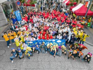 20チーム100名の子どもたちが調理したフルーツ飴や焼きそば、射的、キーホルダー、ハーバリウムなどの手作り商品等が会場の宮通りに並びました。