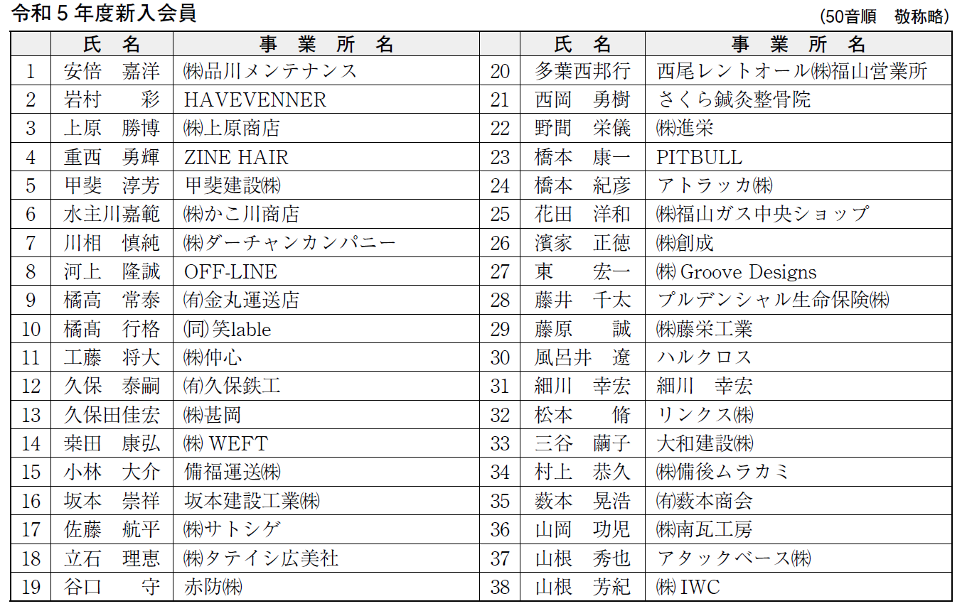 令和5年度新入会員募集の結果38名の応募があり、新入会員面接会を実施しました。その後の役員会で全員の入会が承認され、当YEGは総勢262名となりました。新たに迎え入れるメンバーと共に、親睦を深め、研鑽を積んでいければと思います。