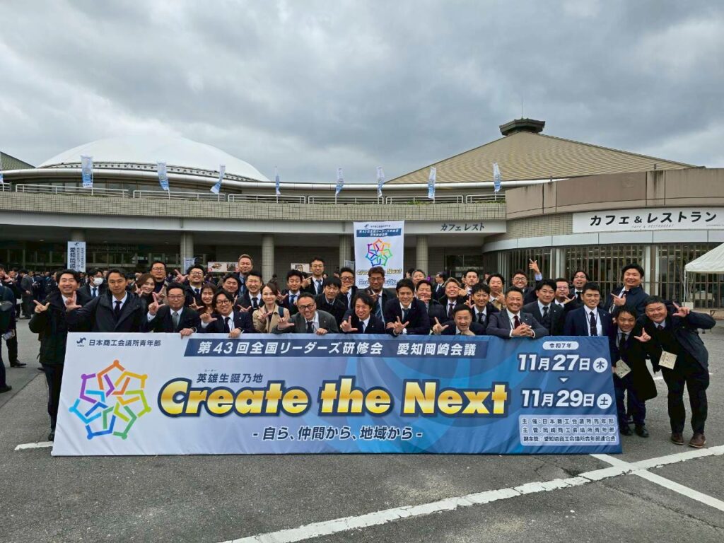 愛知県岡崎市にて開催され、当YEGから小林会長をはじめ52名が参加しました。研修会テーマ「英雄生誕乃地 Create the Next~自ら・仲間から・地域から~」が示すとおり、家康公生誕の地である岡崎で、仲間とともにリーダーシップや地域の発展について深く学べる有意義な機会となりました。