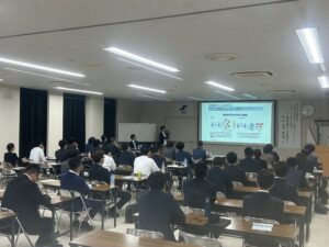 (一社)日本ディープラーニング協会 理事・事務局長の岡田隆太朗氏をお招きし、「チャットGPTを学ぶAI技術の進化による新時代」をテーマに当所101会議室でご講演いただきました。参加者は40名。