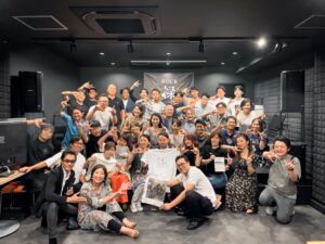中心市街地活性化を目的に商店街をまわって開催する交流イベント「FUKUYAMA VOICE」。第7回は、福山久松通商店街にあるSound&ステーキ 禄(ROCK)で開催し、当YEGメンバーや一般の方合わせて38名が参加しました。