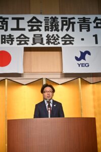 杉原会長より次年度会長選任の件についての議案が上程され、満場一致で可決承認されました。次年度会長には㈱福山管機工業 代表取締役